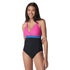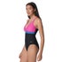 Step up your swim style in this ultra-feminine suit, featuring a deep v- neckline and adjustable crisscross straps. Removable cups and chlorine-resistant fabric deliver comfort and optimal durability, while built-in Block the burn UPF 50+ protects against the sun.