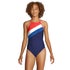 High Neck Colorblock Tie Back One Piece - Red/White/Blue | Size 12