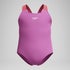Watch them jump waves and collect seashells in our violet-colored Learn to Swim infant Medalist swimsuit. The medalist straps stay comfy and secure wherever your young water explorer goes, and the chlorine-resistant EnduraFlex fabric fits like new for longer with CREORA HighClo™. Body made of 80% Nylon, 20% Elastane (Creora® HighClo).