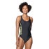 Flattering swimsuit for the pool and lounging? Check. This red, white, and blue style features a colorful oversized logo and a semi-open back with fixed crisscross straps for greater range of motion with each stroke. The high-cut style is made from Durable fabric enhanced with Block the burn UPF 50+ delivering ultimate sun protection.