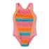 She'll be easy to spot in and out of the pool in this printed splice swimsuit, made from chlorine-resistant fabric for durability. Its racerback design and built-in Block the Burn UV 50+ sun protection make the style a go-to option all season.