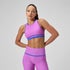 Swim strong in our violet high-neck fitness top. Contrasting seams create a structured aesthetic, so you look the part as you step it up a gear. Cross-back straps add style while allowing you to move freely in and out of the pool. Removable bra cups add shape, and UPF50+ blocks the burn. Cut from pilling-resistant Enduraflex fabric for higher chlorine resistance and shape retention.