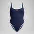 Old-school styling, fresh new vibe. With its retro good looks, our navy scoop-front swimsuit has an eighties flavour inspired by the Speedo design archives. Comfy, chlorine-resistant fabric feels as good as it looks, so you can style it up for the beach or street. Keep your cool in the quick-drying fabric with UPF50+ sun protection.