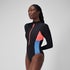 Women's Long Sleeve Colorblock Zip One Piece Black