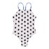 Stand out at practice and beyond in this one-piece swimsuit featuring a barely there bottom that'll ease any tan line worries. A colorful print covers the Durable suit, featuring fixed straps and a plunging back. This style makes it impossible for anyone to kill your vibe.