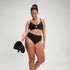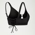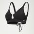 Ensure your holiday style is on point with our flattering black triangle bikini top. The stylish design includes a V neckline and a laced back for an adjustable fit. Cut from premium shaping fabric, it has a wide underband and removable bra pads for support and shaping. Gold hardware elevates the look. Made from chlorine-resistant fabric which fits like new for longer with CREORA HighCloâ„¢ Spandex.
